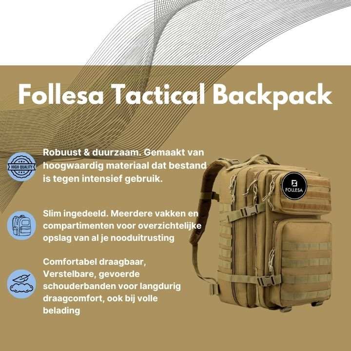 FOLLESA® Noodpakket met robuuste, duurzame tactische rugzak, meerdere compartimenten, comfortabele verstelbare draagbanden, ideaal voor noodsituaties en outdoor gebruik