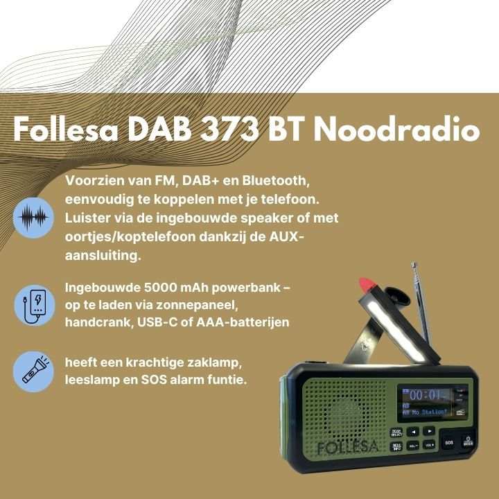 FOLLESA® Noodpakket met DAB 373 BT noodradio, powerbank, zaklamp en Bluetooth voor noodgevallen