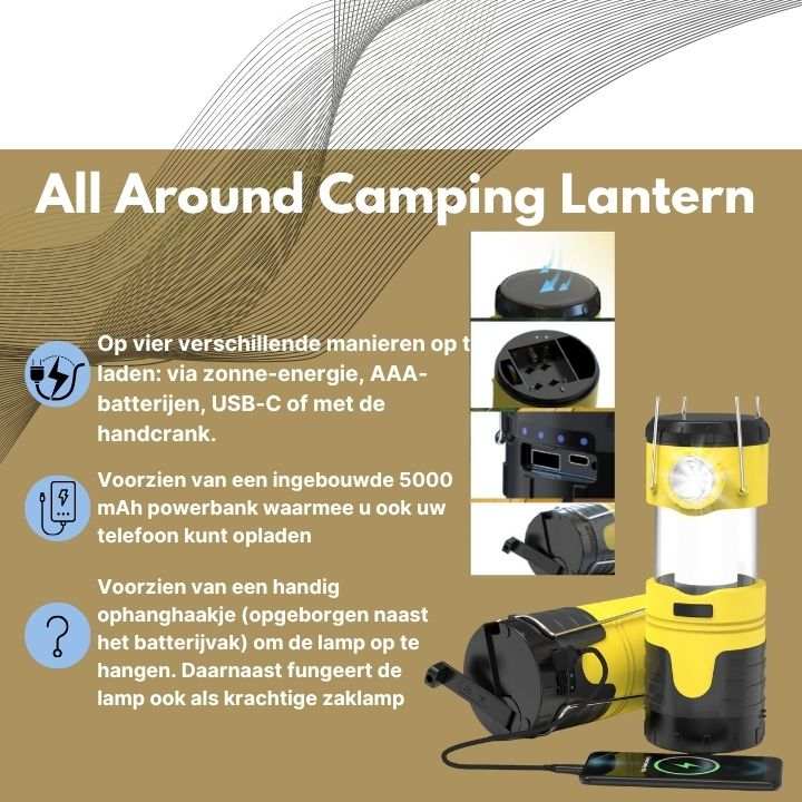 • Multifunctionele lantaarn: licht, opladen en powerbank in één