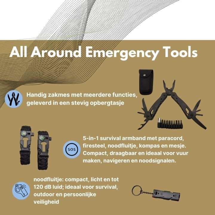 Onvoorziene noodsituaties zijn vaak niet te voorspellen. Een plotselinge stroomstoring, extreem weer of andere noodsituaties kunnen je zonder elektriciteit, schoon drinkwater of communicatiemiddelen laten zitten. Voorbereid zijn maakt het verschil. Dit complete noodpakket bevat alles wat je nodig hebt om veilig, zelfvoorzienend en gerustgesteld te blijven – waar je ook bent.