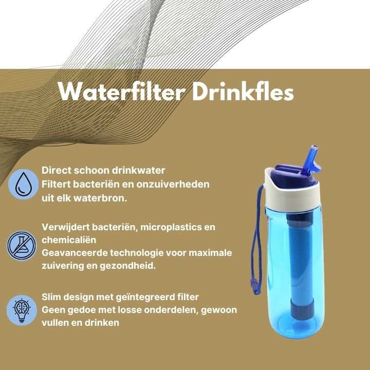FOLLESA® Noodpakket waterfilter drinkfles met geïntegreerd filter voor schoon drinkwater en verwijdering van bacteriën en microplastics