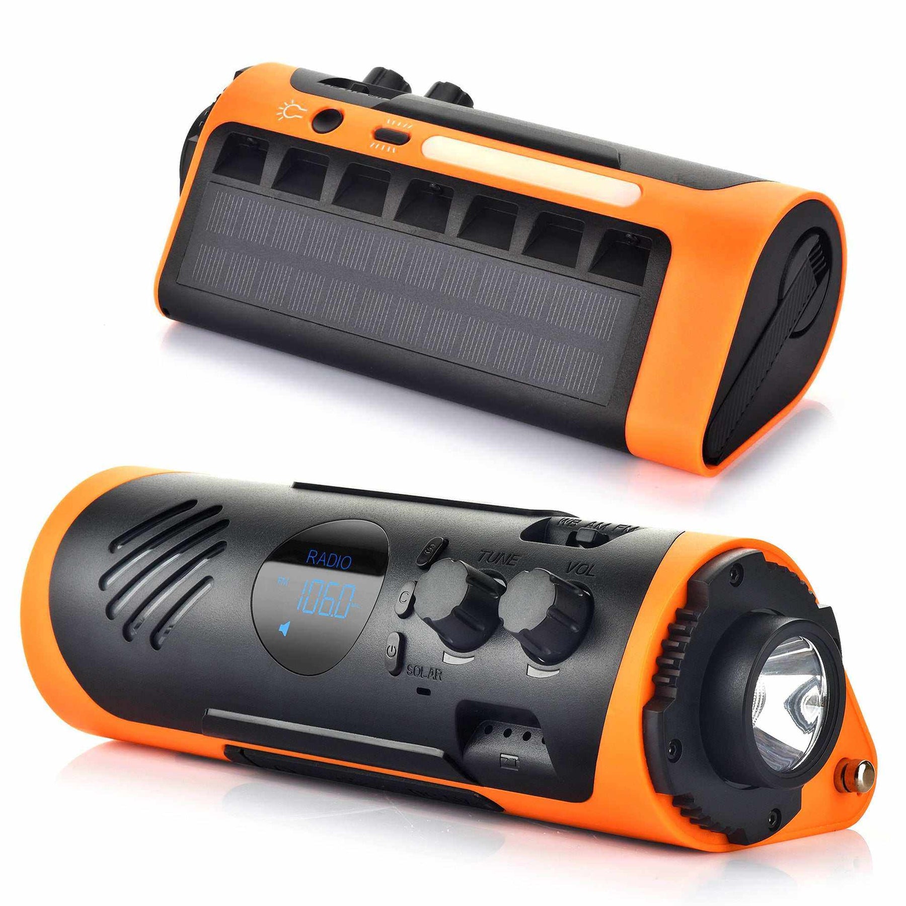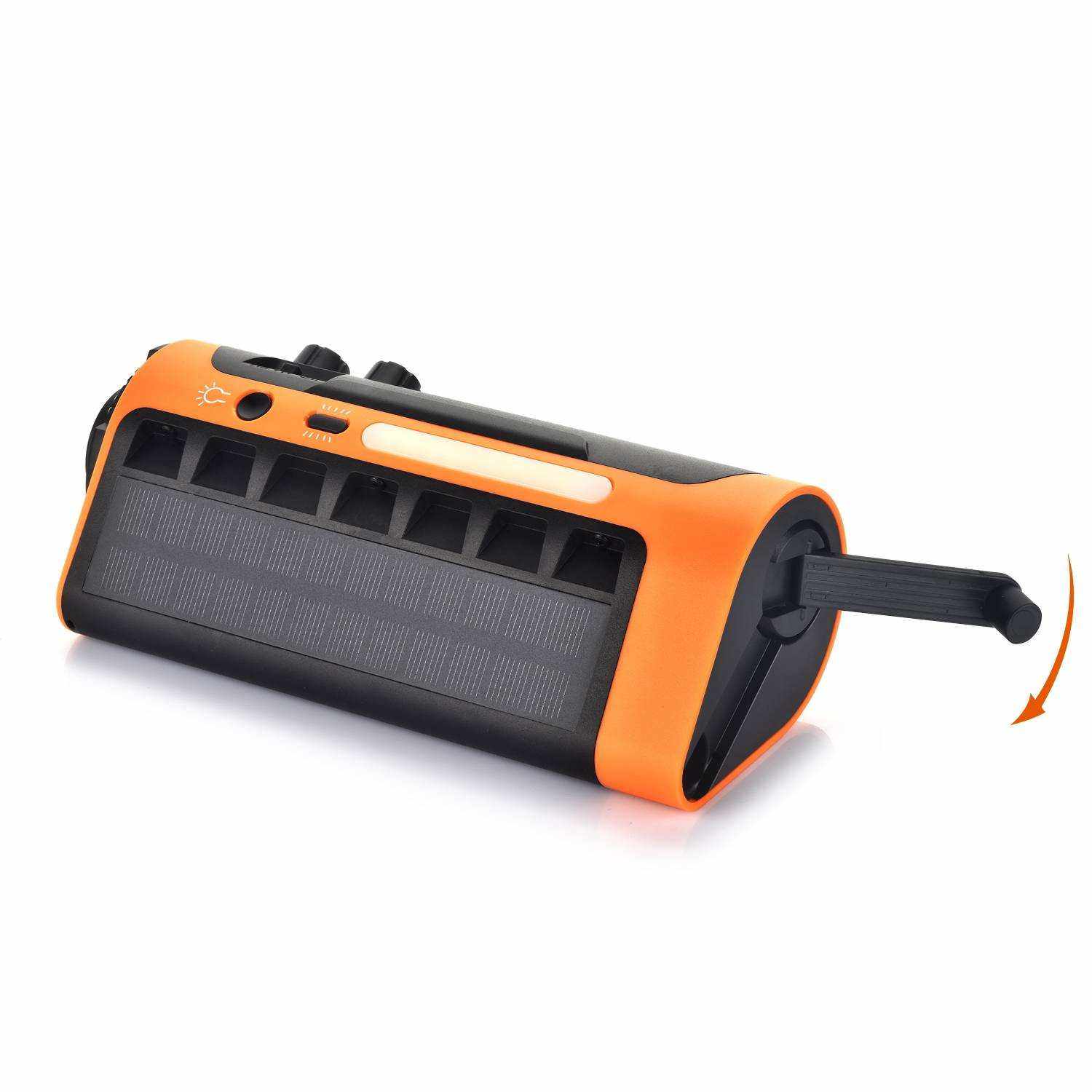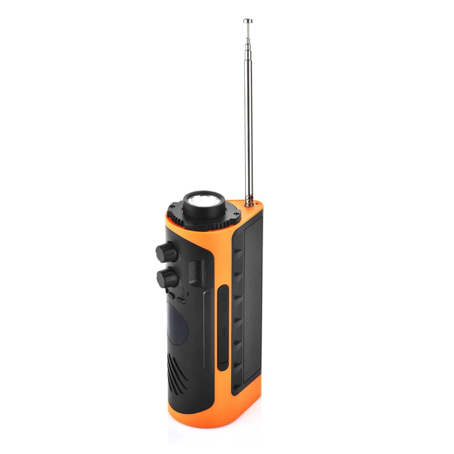 Follesa NoodRadio 2200 mAh noodradio met handcrank, USB en solar oplaadmogelijkheden, compacte oranje survival radio met powerbank en zaklamp