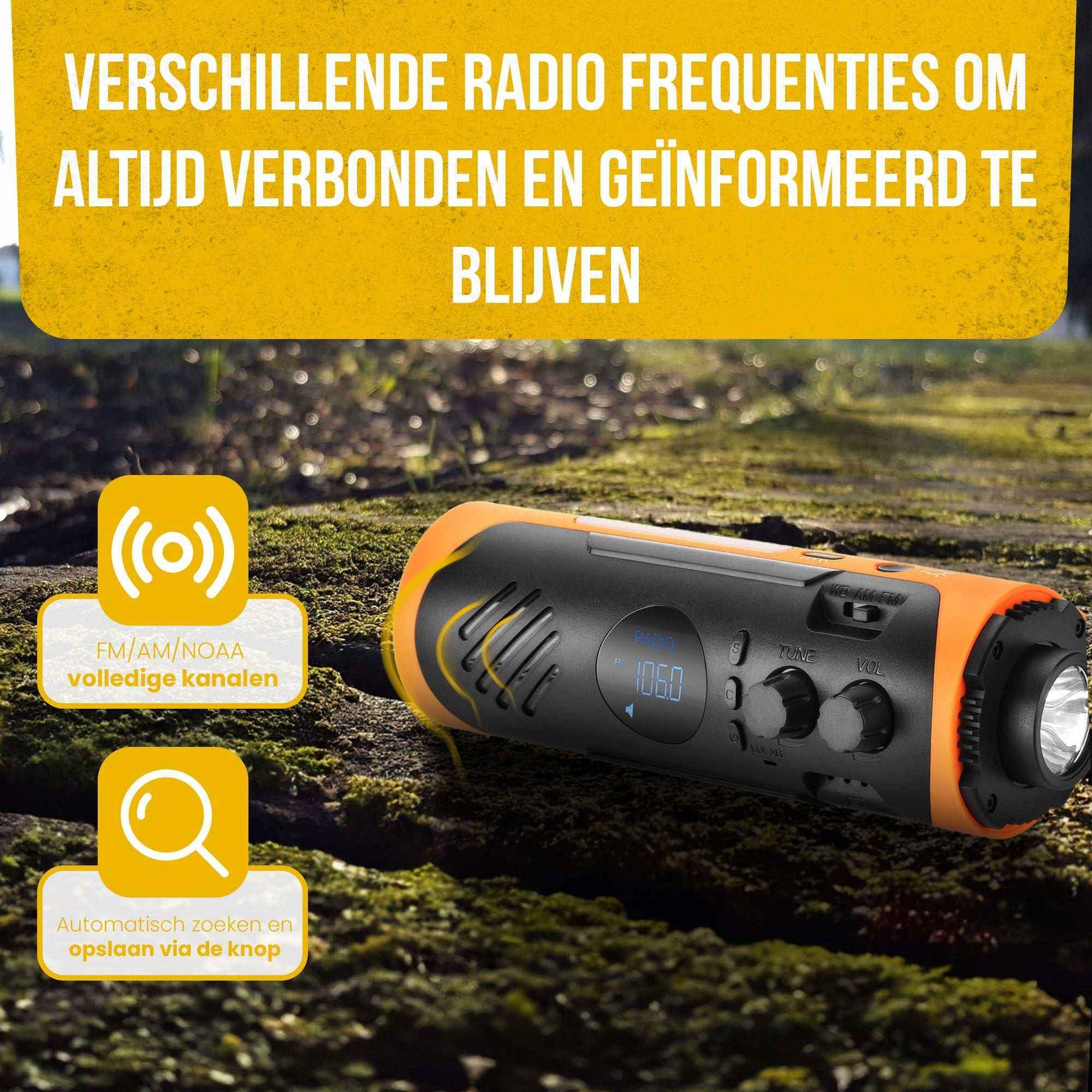 - FM / AM / NOAA kanalen voor het luisteren naar noodgevallen updates